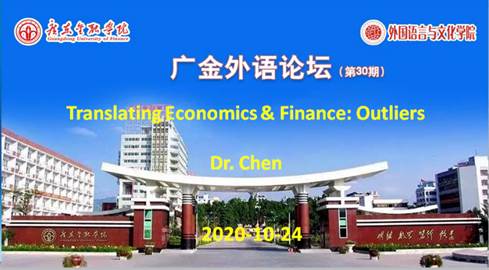 2020年10月24日,翻译系陈定刚博士主讲第30期广金外语论坛,在线上为大家带来了一次关于经济与金融翻译的讲座,会议由威廉williamhill体育洪溪珧博士主持,包括广东省高级人民法院外事办主任屈伸和威廉williamhill体育黄中习经理在内的近百名位翻译工作者和师生聆听了陈博士内容丰富的专业讲座。