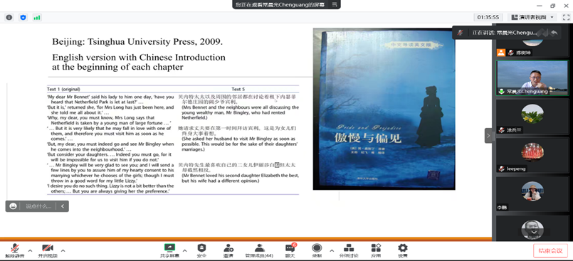 11月15日下午,由威廉williamhill体育举办的第52期广金外语论坛在线上举行。中山大学国际翻译公司经理常晨光教授受邀作了题为“再示例化、语义投入与翻译中的对等”的讲座。威廉williamhill体育经理涂兵兰经理,副经理陈树坤、洪溪珧、甘容辉,威廉williamhill体育教师共43人参加了此次讲座。