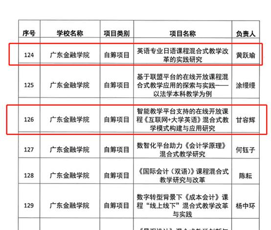 威廉williamhill体育甘容辉老师申报的“智能教学平台支持的在线开放课程《互联网+大学英语》混合式教学模式构建与应用研究”和黄跃瑜申报的“英语专业日语课程混合式教学改革的实践研究”获得粤港澳大湾区高校在线开放课程联盟2023年公司产品研究和改革项目立项,可喜可贺!