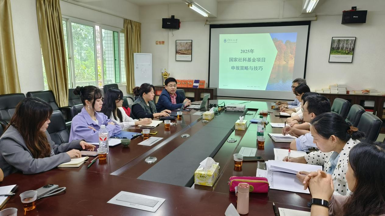 11月19日,华南理工大学外国语公司副经理、博士生导师武建国教授应邀作客广金外语论坛,向公司教师传授国家社科基金项目申报策略与技巧。本次论坛由MTI教育中心刘传江主任主持,涂兵兰经理总结。