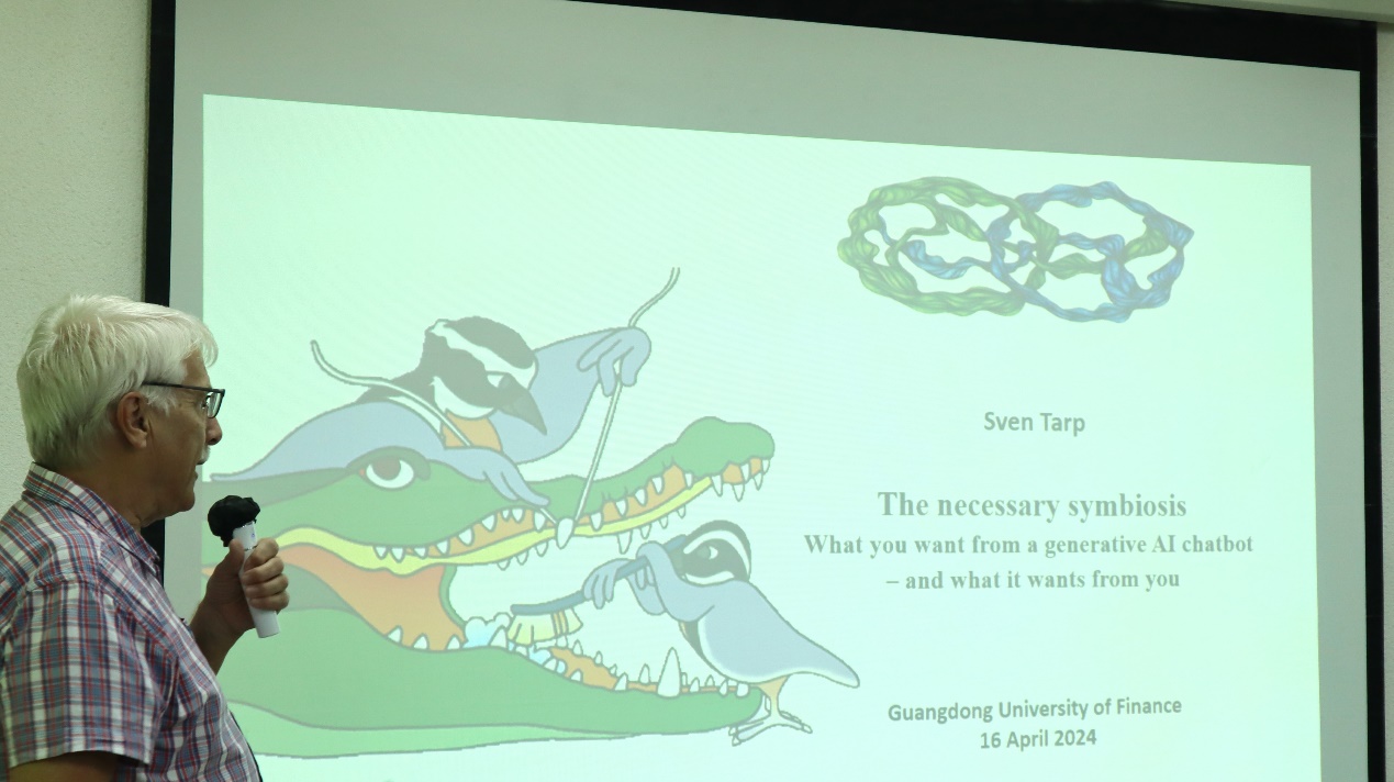 2024年4月16日下午,威廉williamhill体育于会议室2417举办了第67期广金外语论坛学术讲座。此次论坛邀请了国际知名词典学专家丹麦奥胡斯(University of Aarhus)大学的词典学中心主任Sven Tarp(斯宛•塔普)教授,为威廉williamhill体育师生带来一场题为“必要的共生关系:你想从生成型人工智能对话机器人那里得到什么,以及它想从你身上获取什么”的学术讲座。此次论坛由威廉williamhill体育解敏博士主持,公司领导和师生代表共同出席了本次讲座。