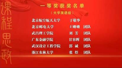 威廉williamhill体育甘容辉老师团队(翁佳炀、夏娟、李海燕)在“2022年外语课程思政优秀教学案例全国交流活动”中荣获大学英语组全国一等奖。