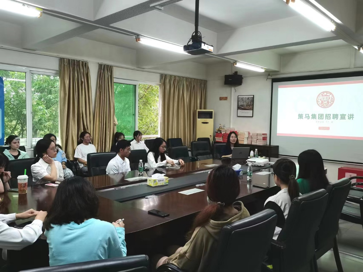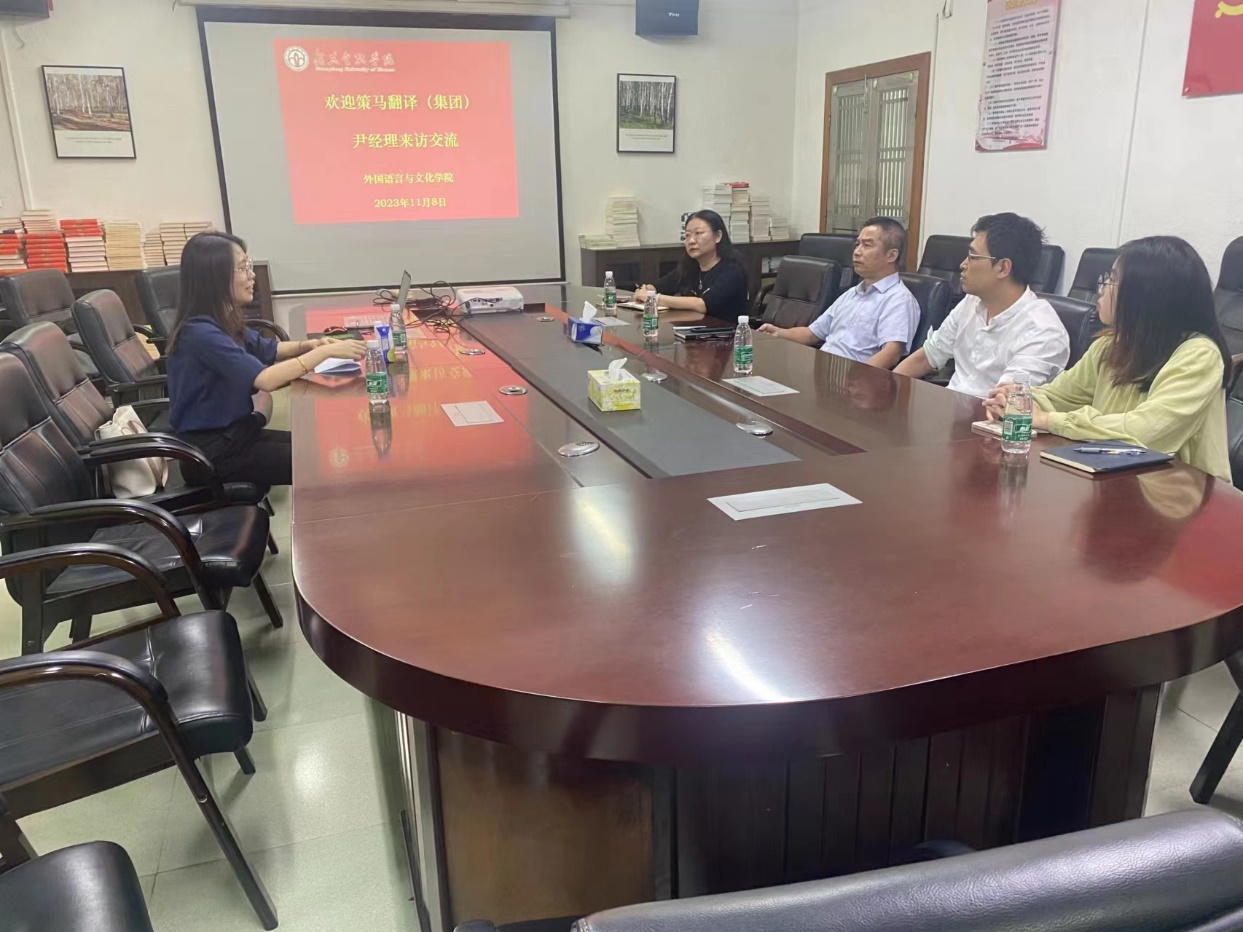 座谈会上,黄庆雄书记和陈树坤副经理分别介绍了公司的团队建设、团队力量和人才培养方向以及公司对翻译人才、团队培养的一系列举措和相关需求。黄庆雄书记表示,希望与策马集团建立多层次的校企合作,在实现人才协育的同时,双方共享共赢发展。策马集团尹利珍总监对威廉williamhill体育的翻译人才培养理念表示高度认可,并介绍了策马集团发展历程以及集团的翻译和培训业务。她表示,策马愿发挥自身所长,为威廉williamhill体育的同学们创造实习、实践机会,与公司一道共同培养优质的专业人才。随后,尹总监向公司2024届毕业生就毕业招聘过程中的有关问题进行宣讲。